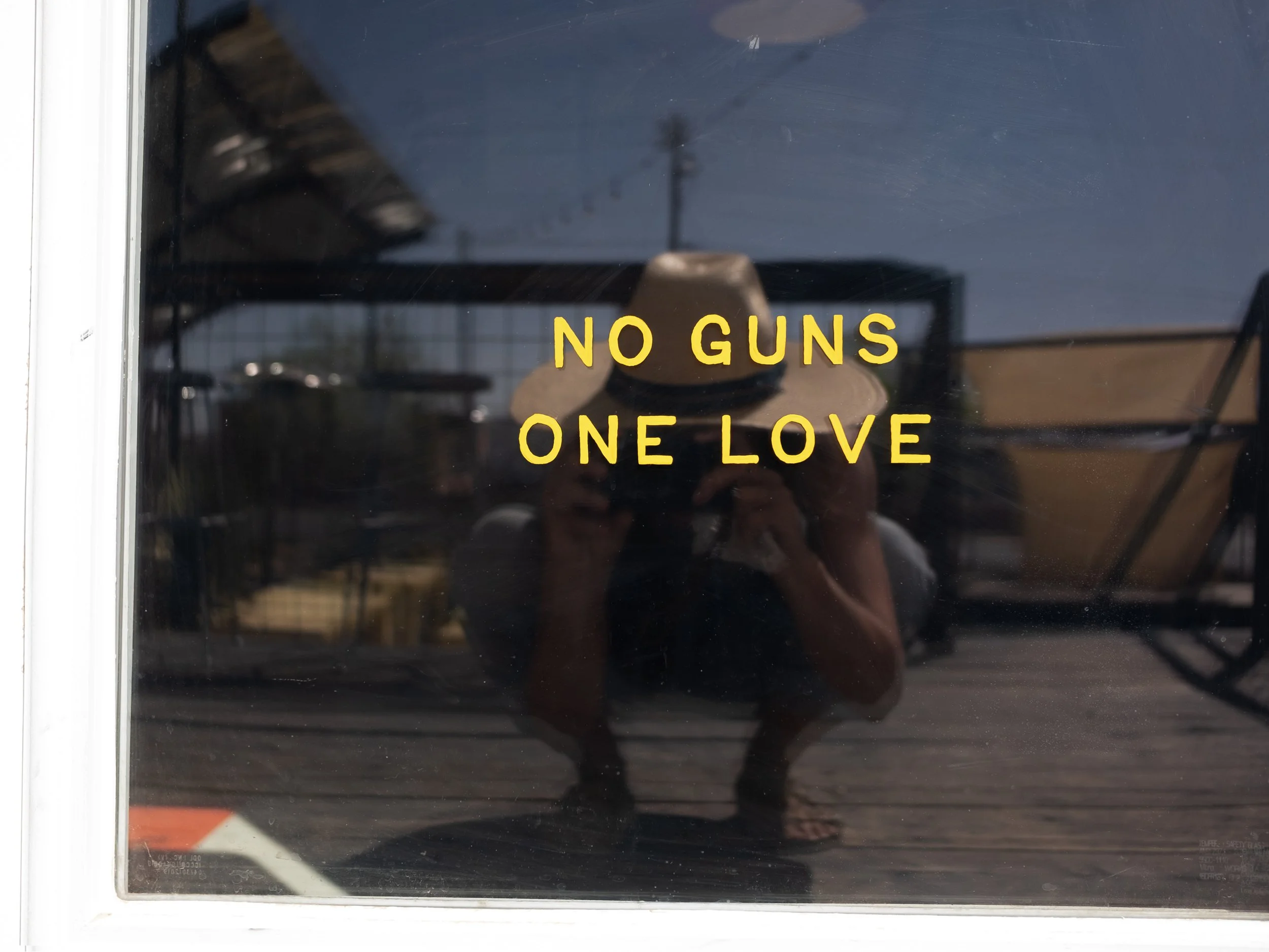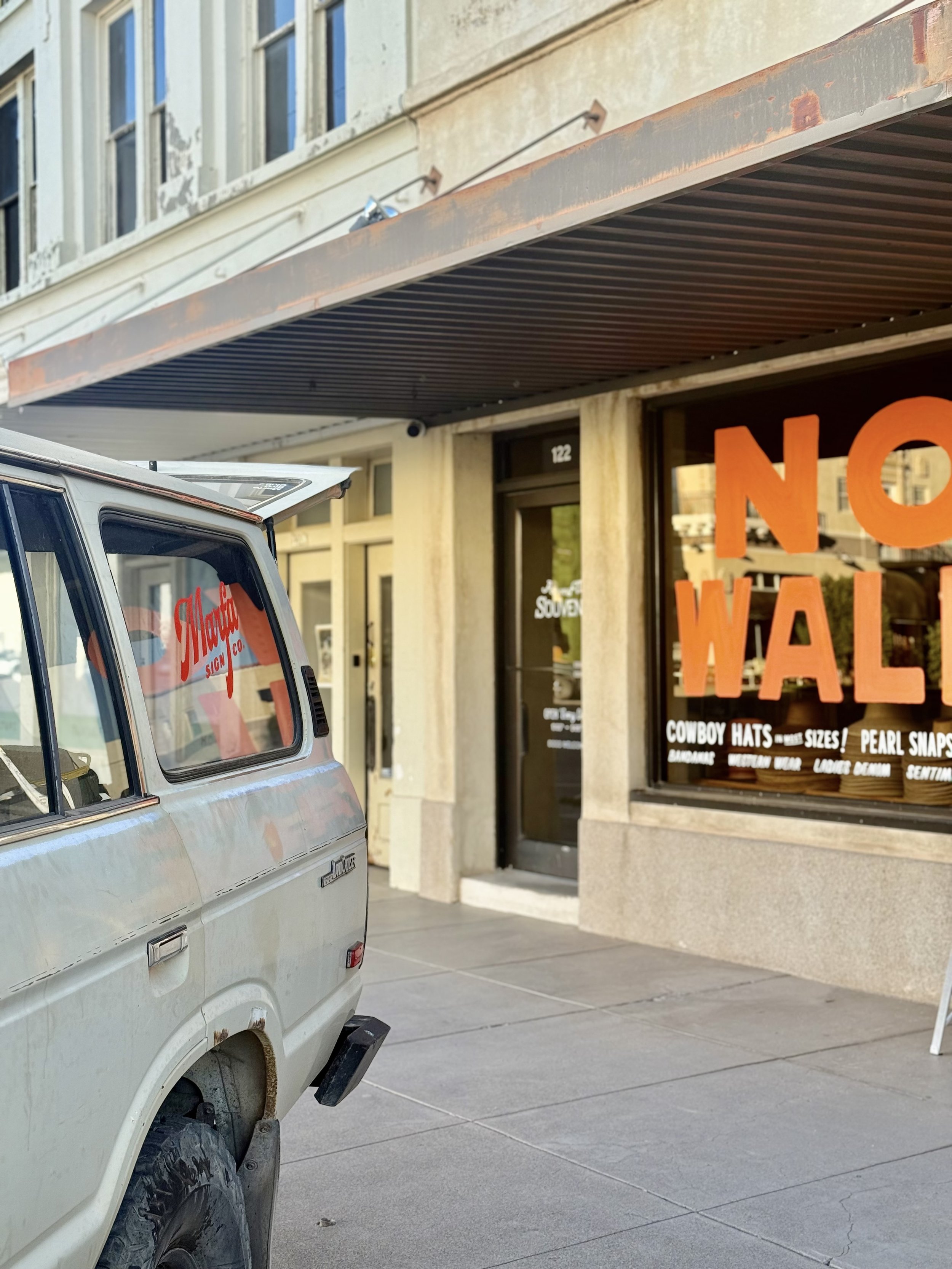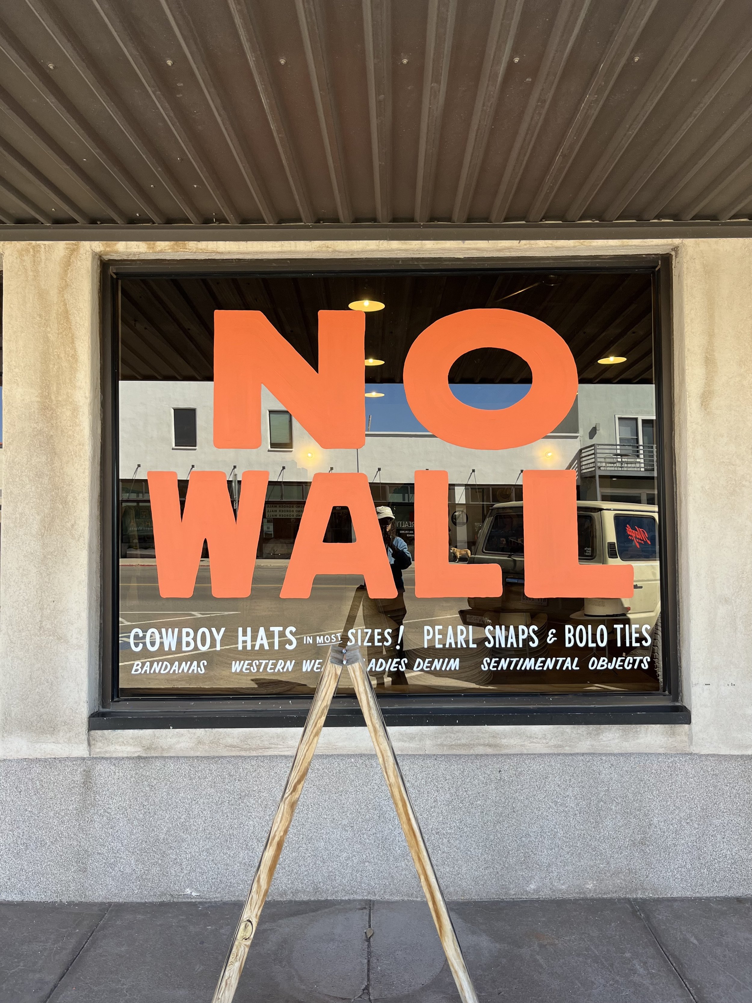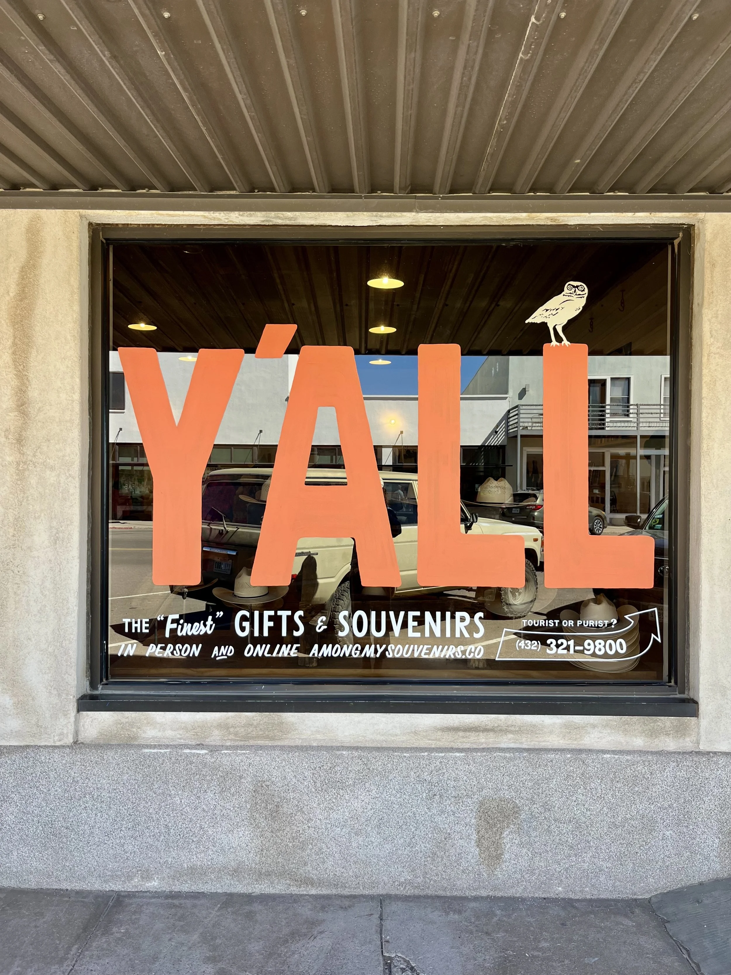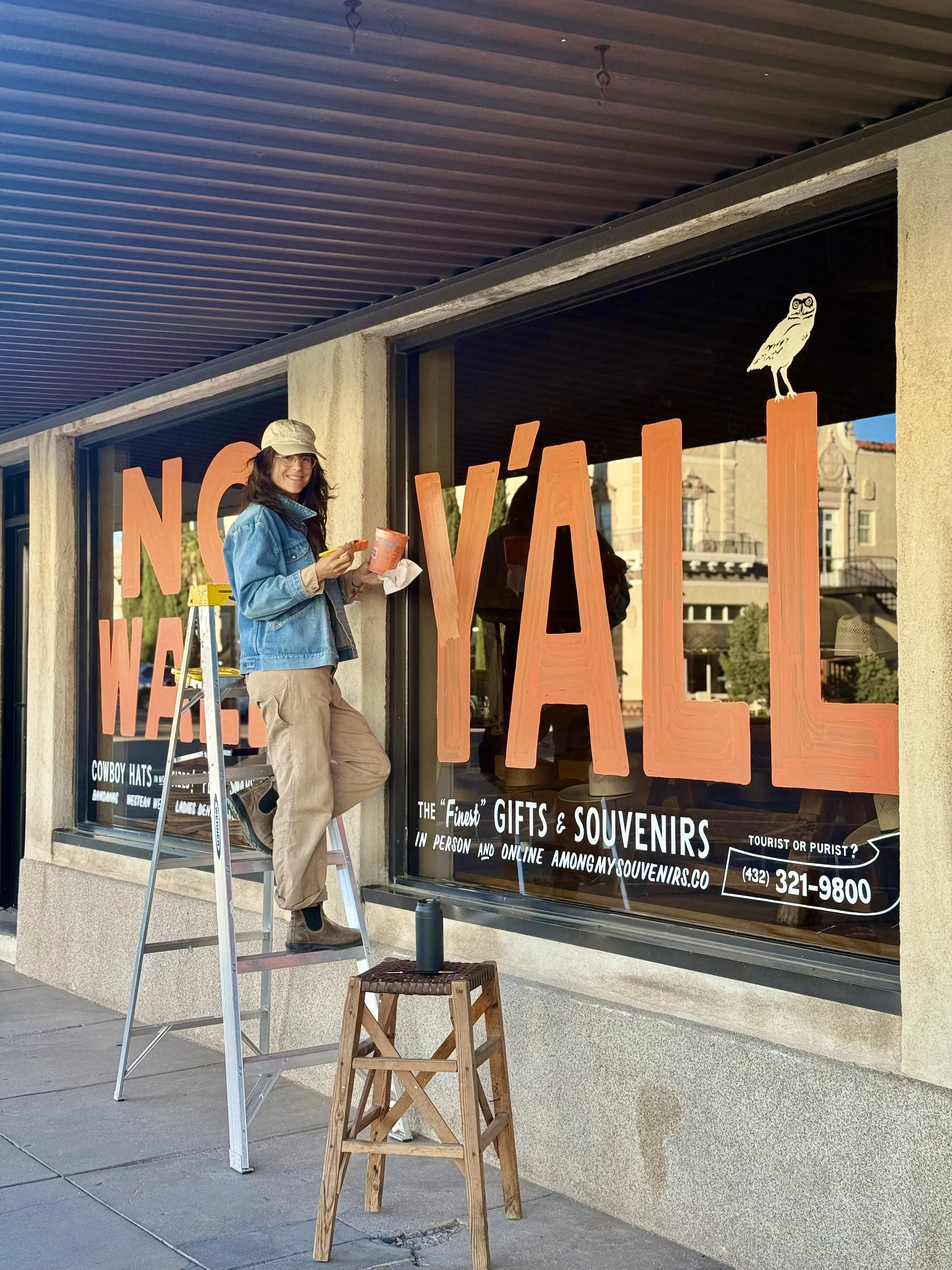 Superfast turnaround on a timely acrylic window sign for this main street business, following their long tradition of “y’all” window signs.